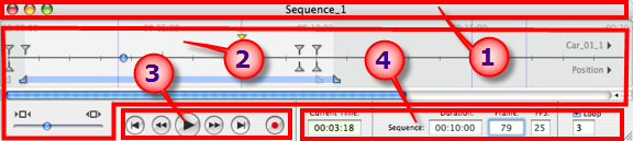The timeline enables the user to record, edit and play a scene. The scene is made up of sequences that are managed in the Animations Inspector list.