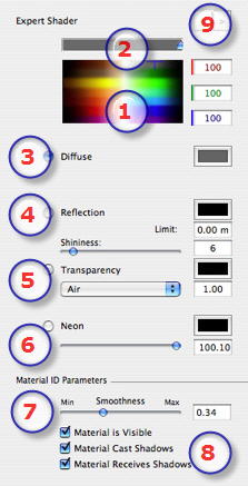 - Click to select a diffusion color or enter numerical values (1 to 255) in the RGB fields.