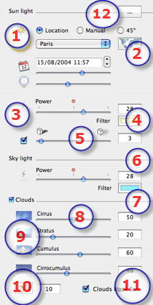 - If the box is checked, the sun remains behind the clouds. The sun rays will not be projected.