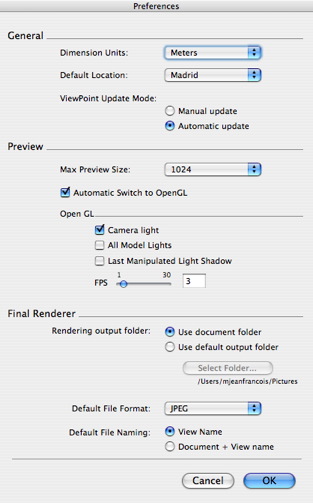 The following different options affect the Preview window rendering display in OpenGL mode.